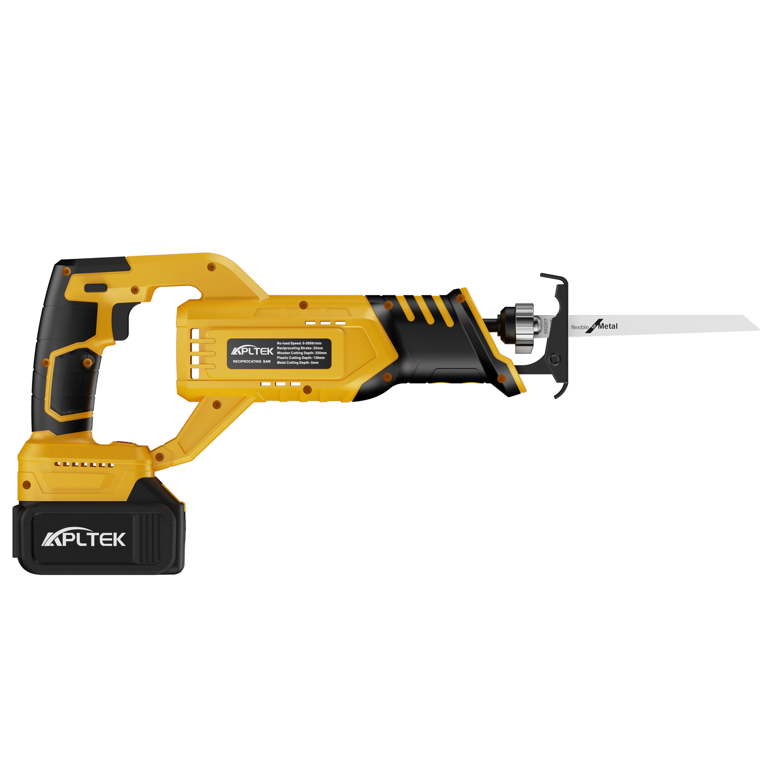 • Multi-material Cutting:The cordless reciprocating saw has a 22mm stroke.It can cut wood, pipes, trees, plastics, metals.The maximum depth of cut: 5mm for metal, 255mm for wood, 130mm for plastic pipes.